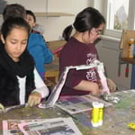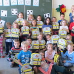 Palmbuschenbinden- alle halfen fleißig mit!