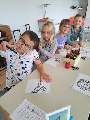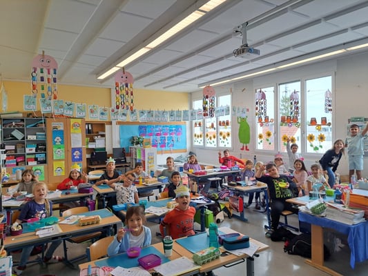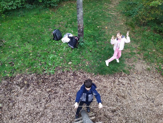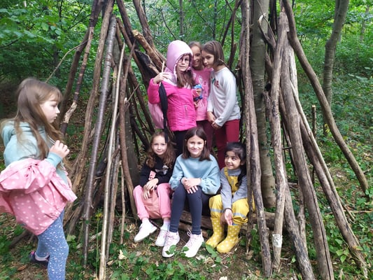 Die 1b war am 16. Oktober mit der Partnerklasse (3b) in der Waldschule in Willhering. Trotz der Kälte war es ein schöner Tag.
